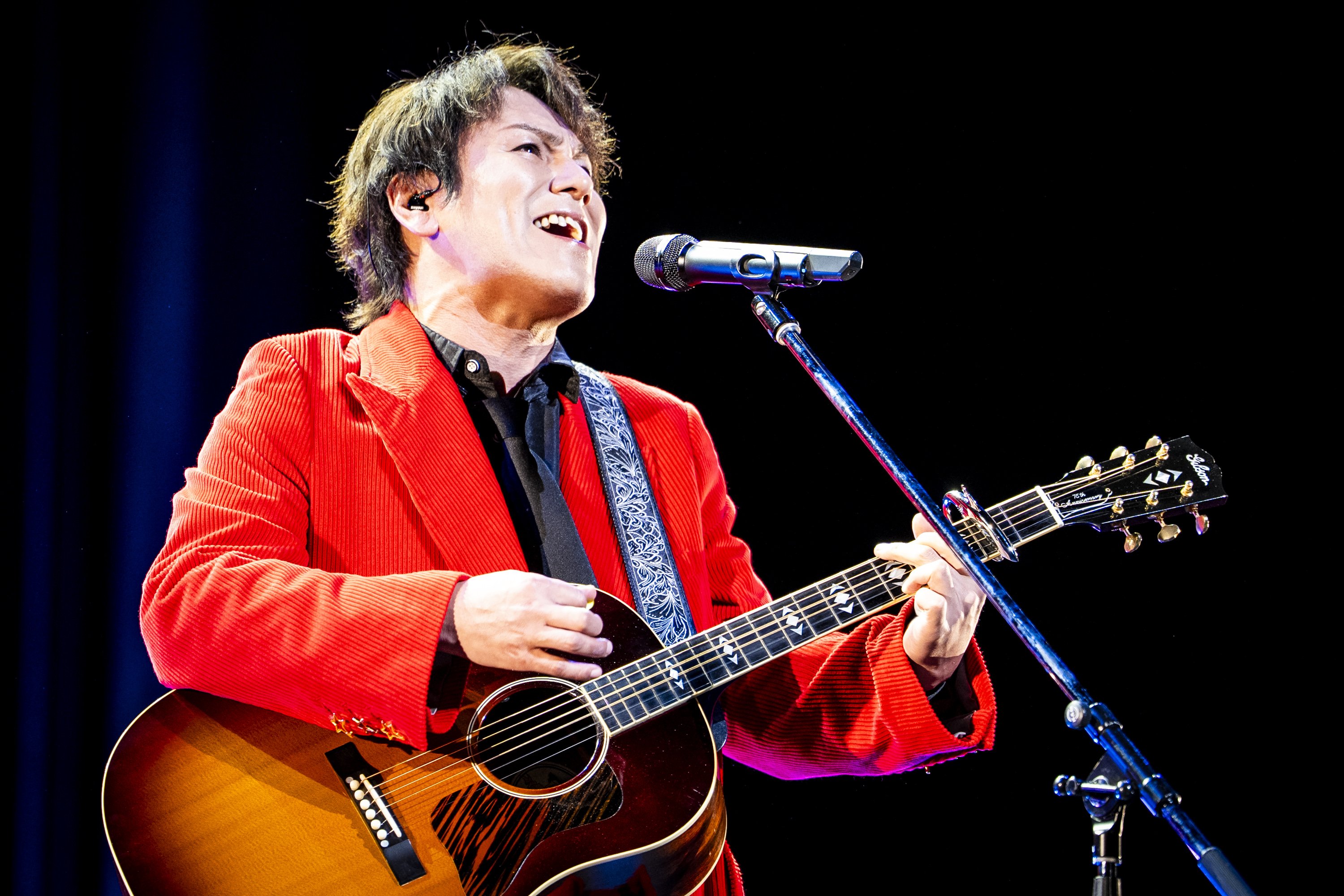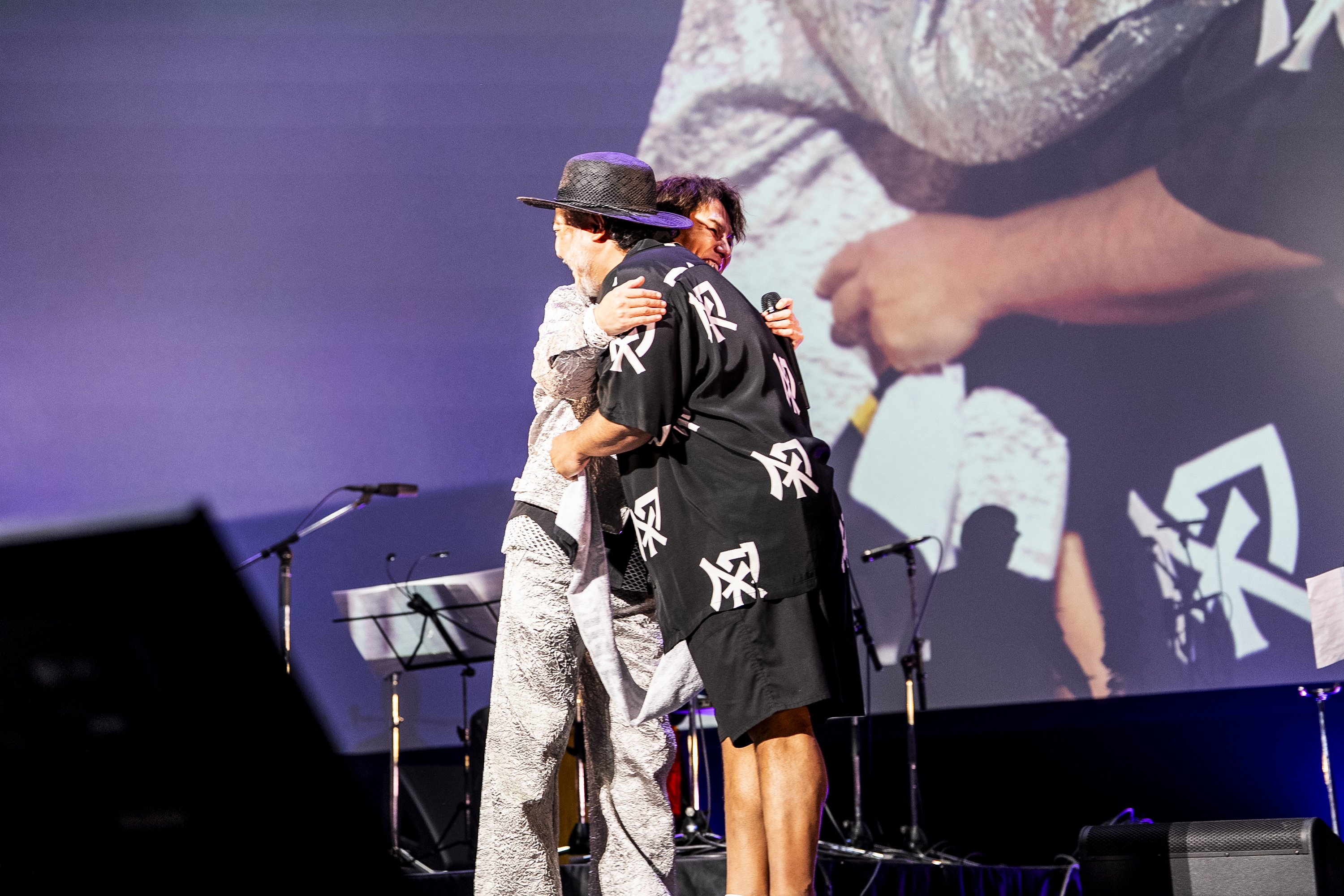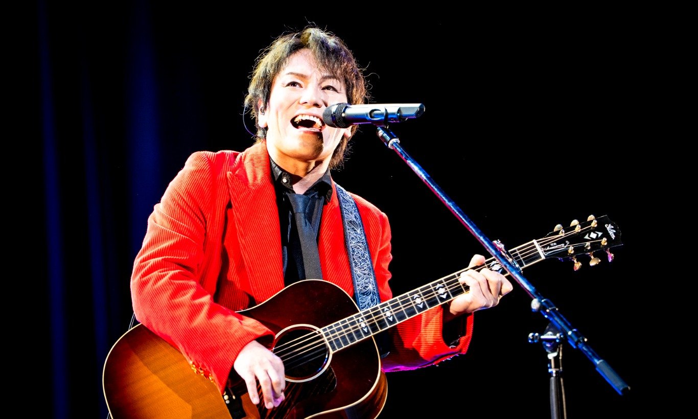 映像が終わると、ステージにはギターを抱えた狩野が登場して「手のひらを太陽に」を披露。ところどころで狩野らしさ満載の、独特のアレンジを織り込んだ歌唱で会場を盛り上げた。