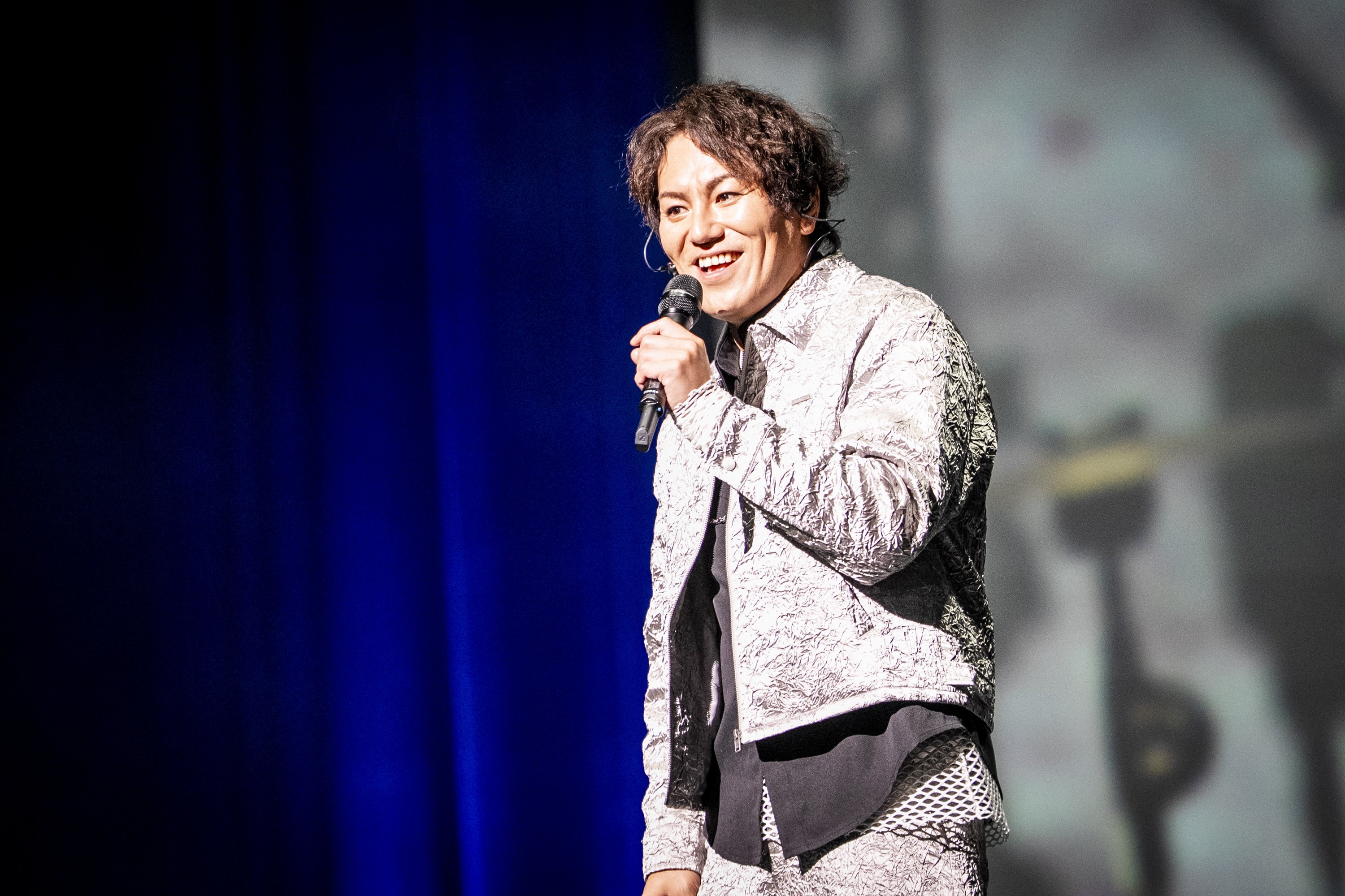 狩野と言えば、開封したばかりの如意棒で蛍光灯を割るハプニング映像がSNSでも話題だが、今回のイベントは、天竺に向かう狩野が如意棒を手に盗賊と戦うドラマ仕立てのオープニング映像でスタート。悪党に向かって「俺の名は英孝だ! 目指すは天竺!」と謳いあげると、公式グッズ「如意棒ペンライト」の光と熱気で会場が包まれた。