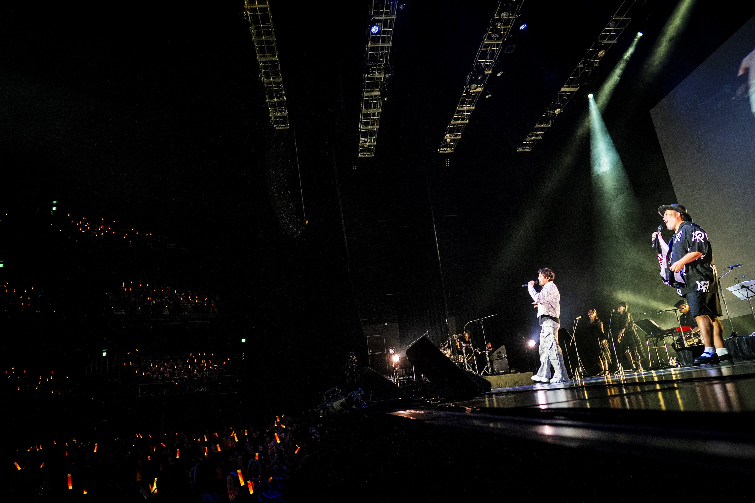 曲後のMCでは「前回はまだコロナ禍でした。自粛となる中、やっとライブができるということで、やりたいことを盛りこんだら、3時間を超えてしまいました。今回はその反省を踏まえて、本当にやりたいことだけを厳選したんですが、やりたいことがふくらみすぎて......前回を超える長丁場になると思います」と明かす狩野の言葉にドッと沸いた会場内。「なので皆さん、トイレなんかも自由に行ってもらっても構いませんし、途中でちょっとコーヒーでも飲んできてもらっても......帰ってきてもまだやってると思いますんで。そんな感じで、ゆったりと見ていただけたら」と語りかけた。
