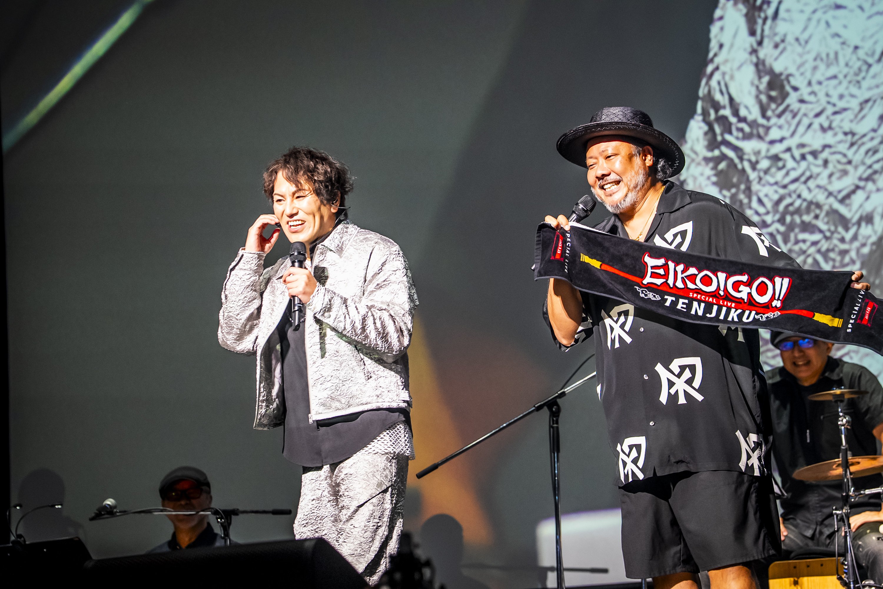 そんなボリュームたっぷりのイベントもいよいよクライマックス。最後はバンドメンバーとともにスペシャルライブを敢行。そこではまたしても、会場を沸かせるサプライズが待っていた。「スペシャルゲストをご紹介します! MONGOL800のボーカル、キヨサクさんです!」という狩野の呼び込みに応え、キヨサクがステージに登場すると会場からはどよめきとともに歓声が。