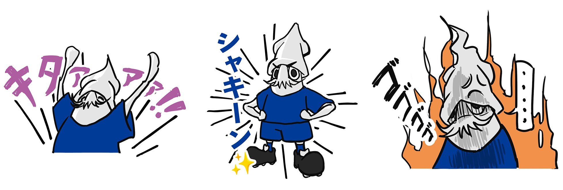 僕が描いた"キャラクター"がこうして南葛SCの応援マスコットに就任することになり、とても嬉しいです。当時、「小さいお子さまや、サッカーを知らない子が、サッカーに興味を持つきっかけになれば」という思いで描いたキャラクターです。