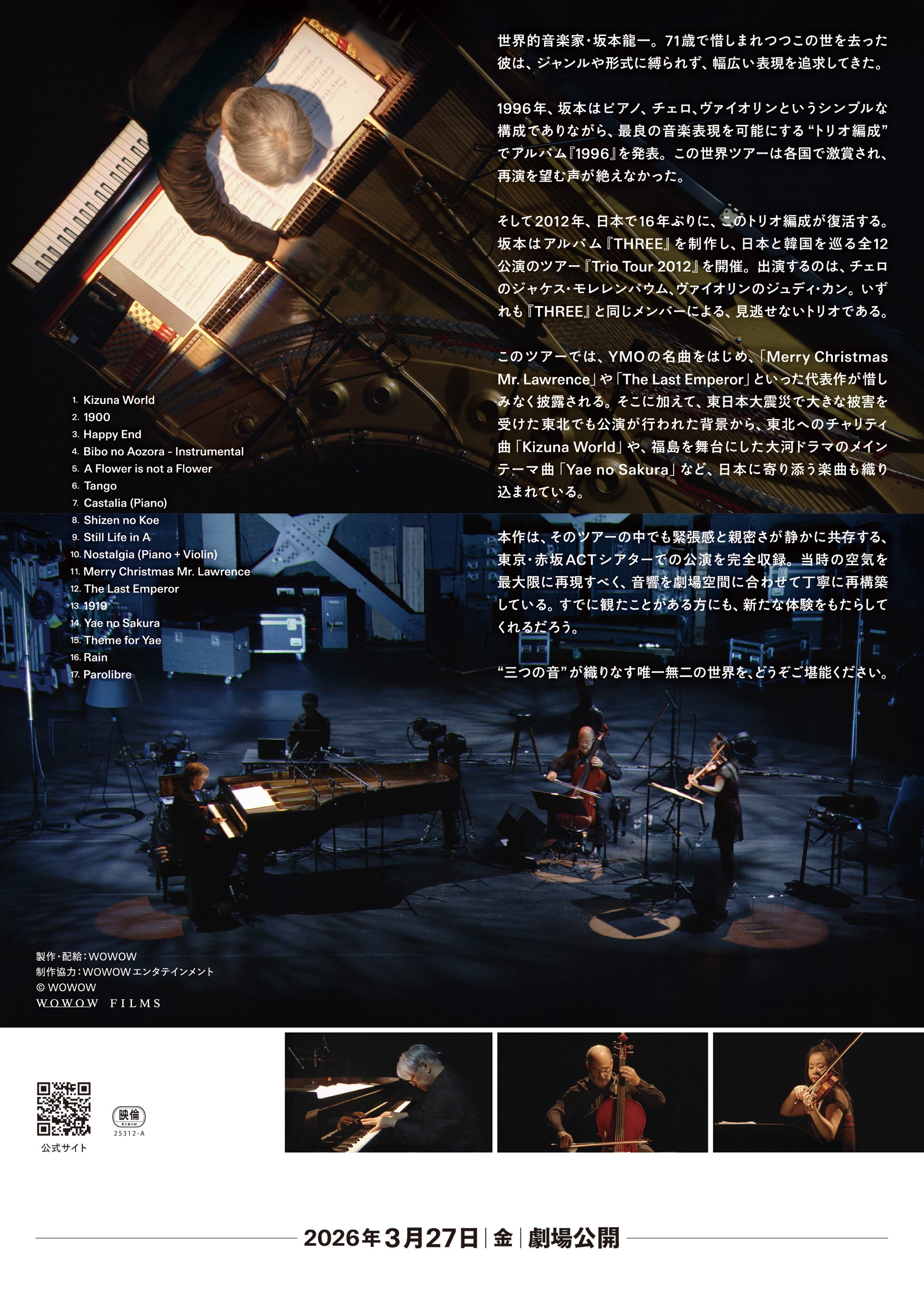 『Ryuichi Sakamoto | Trio Tour 2012』の劇場公開が決定しました。