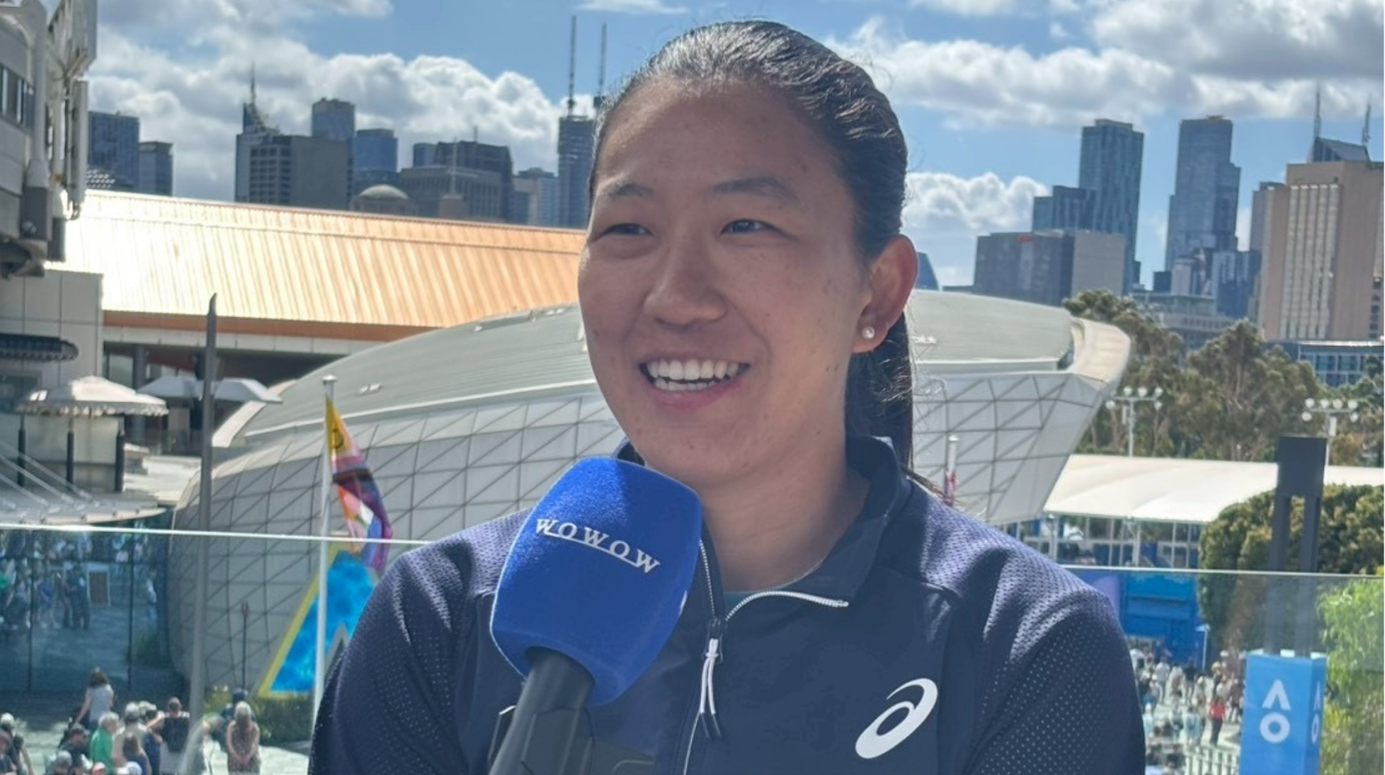 初めてグランドスラム本戦の雰囲気を味わっています。予選からたくさんのファンや観客のみなさんからの応援はありましたけど、試合がない日でもここまでにぎわっているのはグランドスラムだけだと思います。特に、私は全米オープンや全豪オープンのお祭りのような明るい雰囲気は、試合をしていても好きなので、また試合をできることがとても嬉しいです。