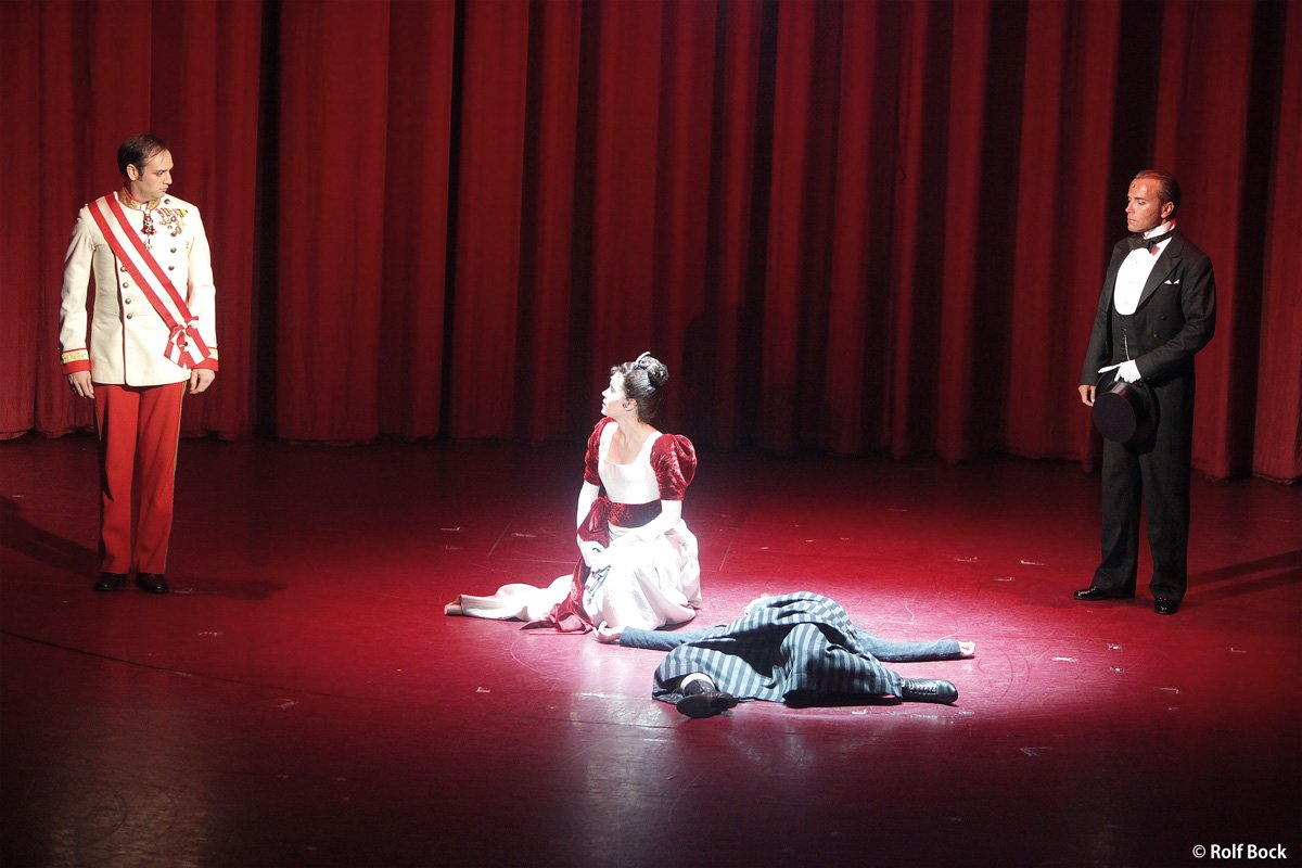 出演:ドリュー・サリッチ(皇太子ルドルフ役(オーストリア皇太子))、リザ・アントーニ(マリー・ヴェッツェラ役(男爵令嬢))、ウーヴェ・クレーガー(ターフェ役(オーストリア首相))、クラウス・ダム(フランツ・ヨーゼフ役(オーストリア皇帝))、カリン・フィリプチッチ(ラリッシュ役(伯爵夫人))、ヴィーツケ・ファン・トンゲレン (役名:ステファニー(皇太子妃))