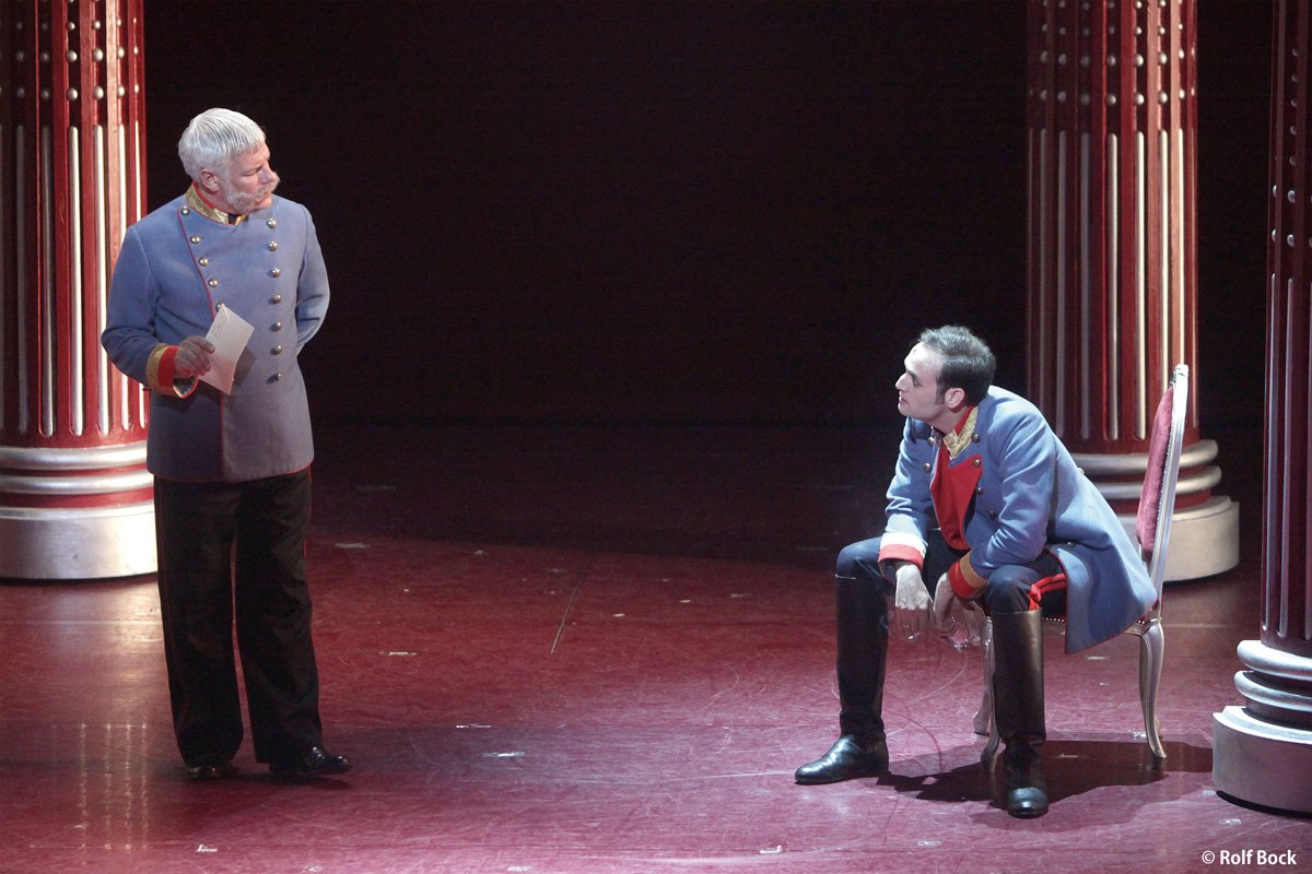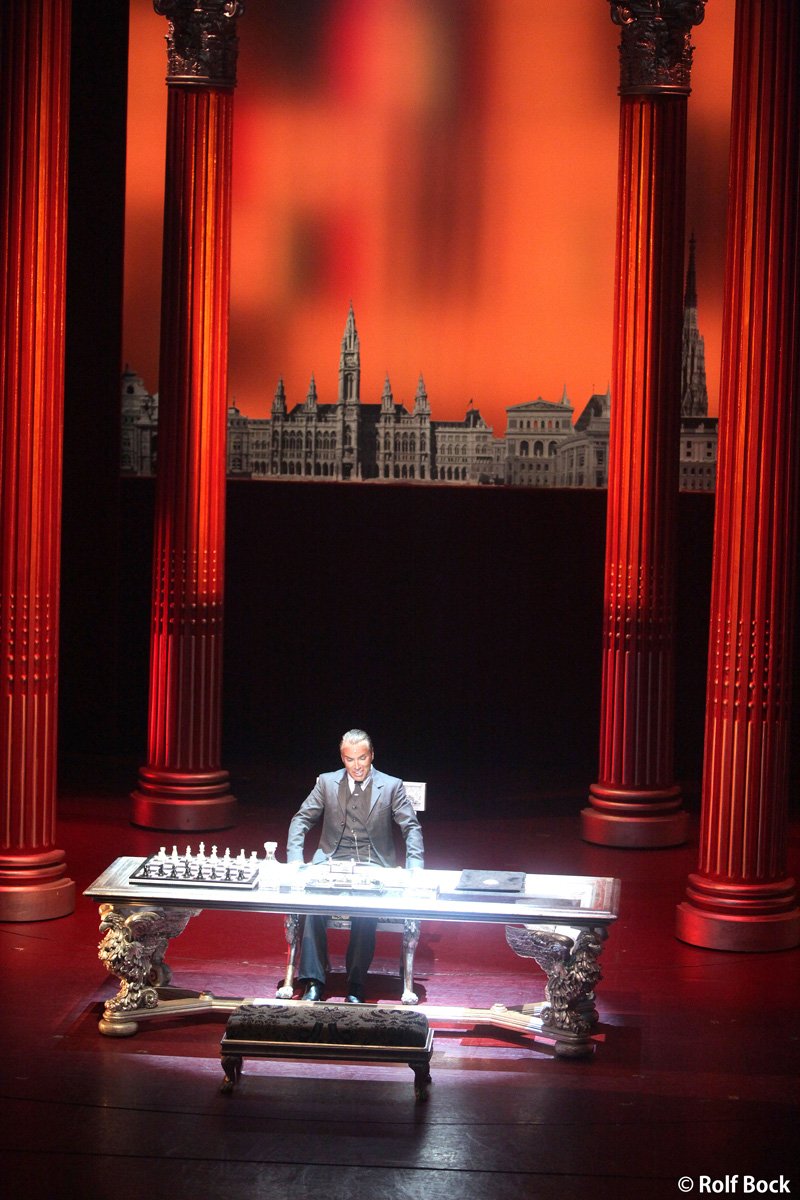 さらに見逃せないのが、ターフェ首相を演じる大御所スター、ウーヴェ・クレーガー。初演『エリザベート』のトート役や初演『レベッカ』のマキシム・ド・ウィンターなどを演じた、ウィーンミュージカルの歴史に燦然と輝く大スターです。ピンと張った高音の迫力と、ドラマチックな演技が大きな魅力で、年齢を重ねるごとに演じる役の幅が広げ、新しい一面を見せ続けてくれます。