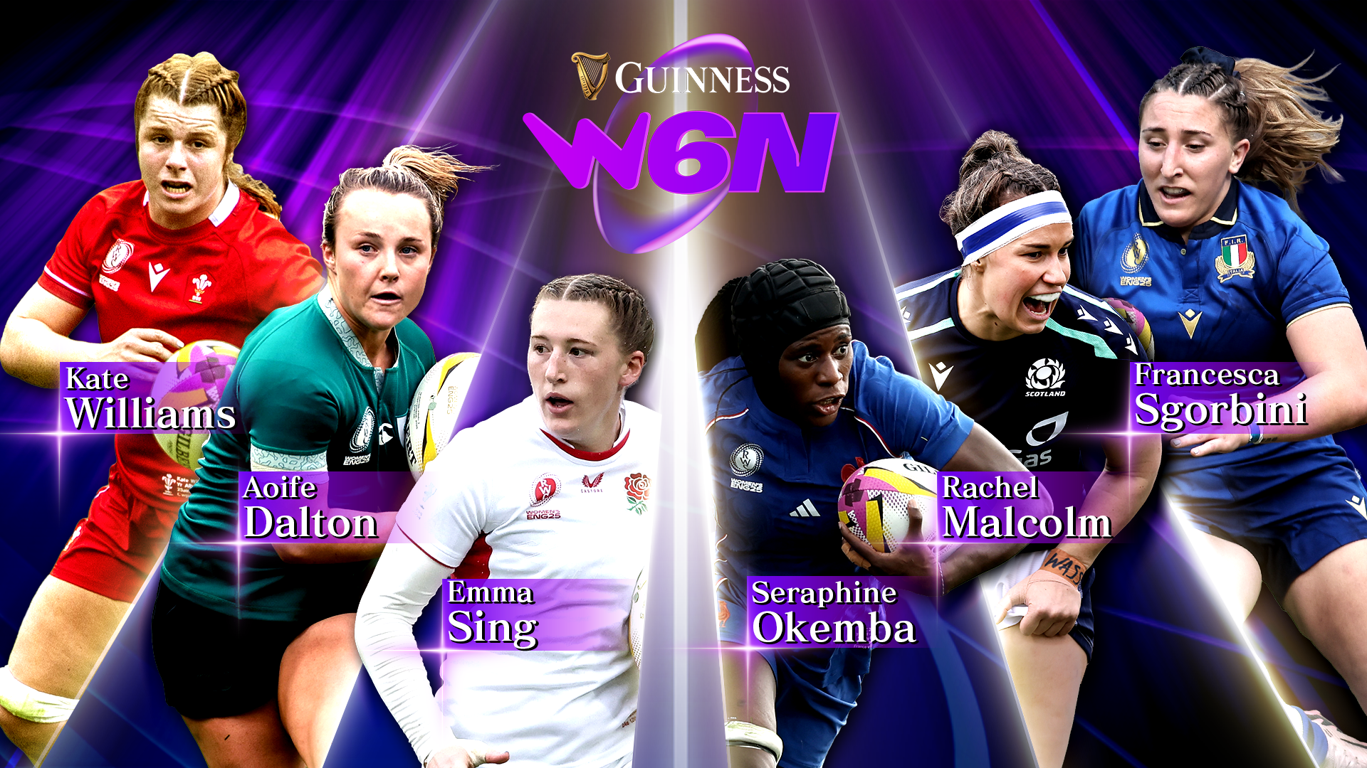 また、女子7人制ラグビーが正式種目となった2016年リオ五輪で「サクラセブン」として活躍した、元日本代表・鈴木彩香さんの初出演も決定。4月11日(土)の第1節「イングランド vs アイルランド」の解説を務める。イングランドのトップリーグ「プレミアシップ」で複数回の優勝経験を持つ、ワスプスでプレー経験のある彼女が、イングランド一強と呼ばれる現在の女子シックス・ネーションズをどのように語るのか注目だ。